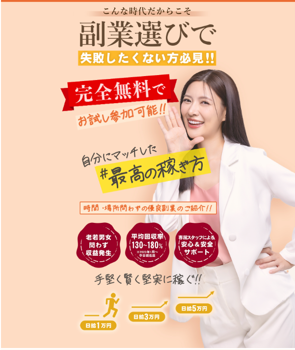 【知識・経験は一切不問】簡単なスマホ操作のみ出来ればOK。隙間時間で高収入を得れる副業です。参加者が平均10万円/月以上稼いでいます。最速スピードの稼ぎ方を皆様に提供しています。